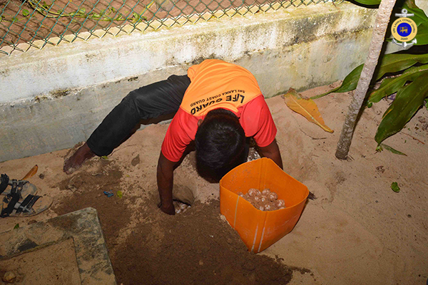 The Sri Lanka Coast Guard (SLCG) stands as a vigilant guardian of Sri Lankan waters, tirelessly ensuring safe, secure, and serene sea for all. Beyond safeguarding maritime activities, the SLCG embraces its duty to protect the rich marine biodiversity, including the numerous species that inhabit these seas. Among the diverse marine life thriving in Sri Lankan waters, five of the world's seven sea turtle species grace the island's coastline. Among these five species, two species are classified as critically enThese marine creatures face numerous natural and anthropogenic threats, including habitat loss, pollution, climate change, illegal wildlife trade, and accidental capture in fishing gear. The Coast Guard Conservation initiatives aim to address these threats and ensure the survival of turtle species for future generations. Therefore, since 2016, the SLCG has taken proactive initiatives to protect sea turtle species for future generations. We currently manage the following eight conservation sites close to Coast Guard Life Saving Points as ‘Sri Lanka Cost Guard Turtle Conservation Project (SLCG-TCP)’ along the western and southern coastal belt.